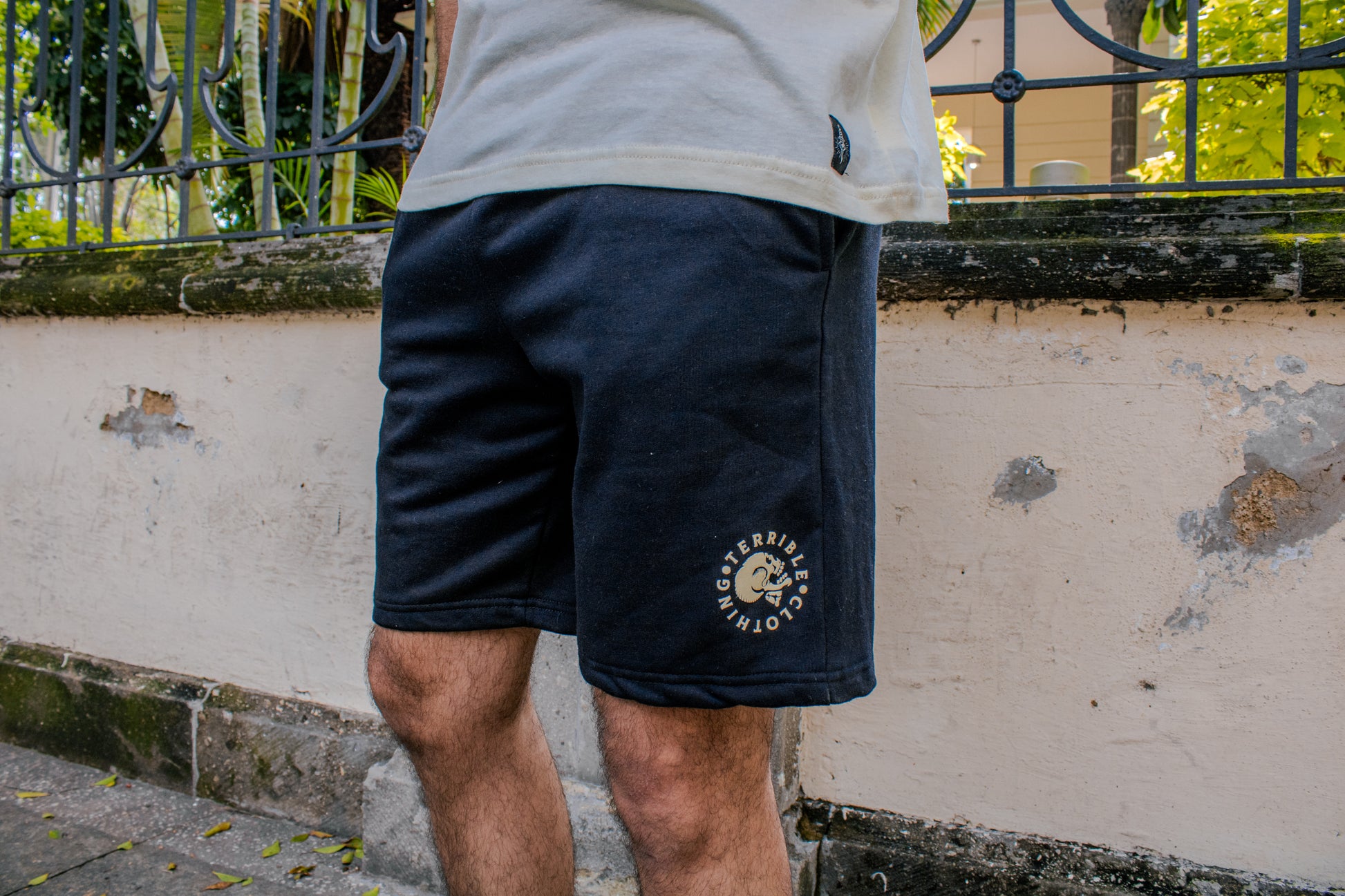 SHORT COLOR NEGRO IMPRESIÓN CON TINTA AHULADA COLOR BLANCO.